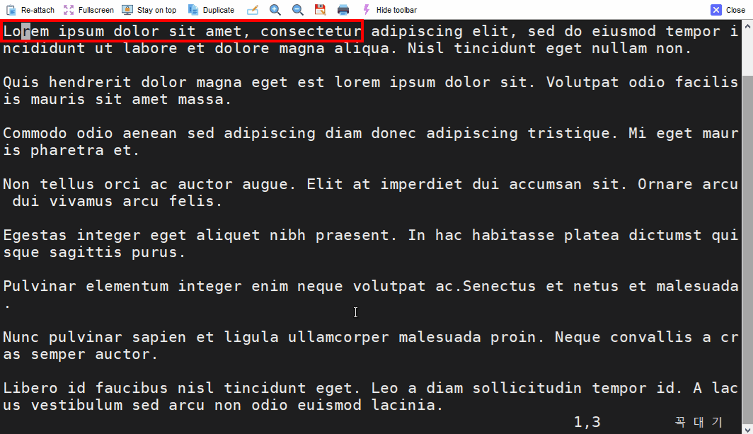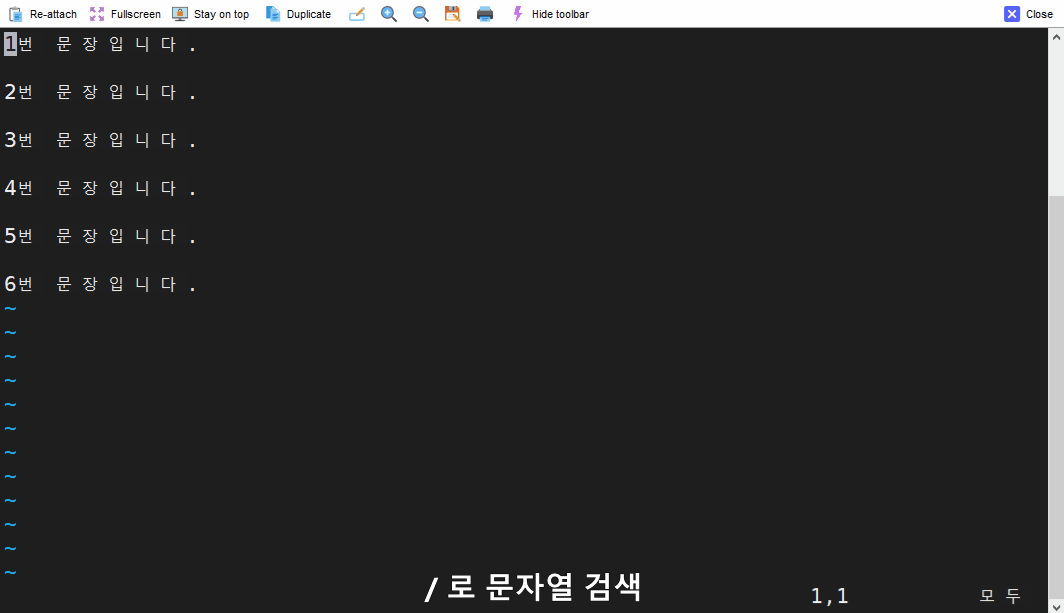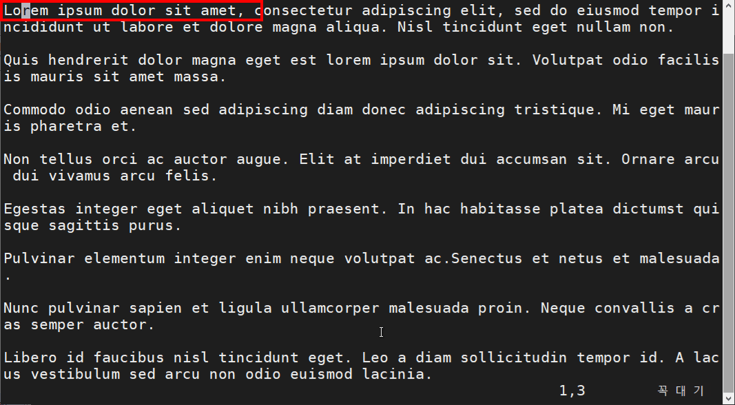 이럴 때 /를 누르고 찾고자 하는 문자열을 입력한 뒤 Enter를 누르면 현재 커서 위치 이후에서 문자열을 검색한다.