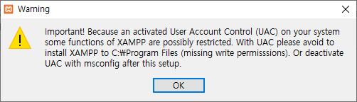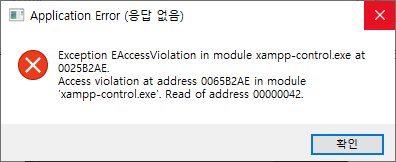 XAMPP를 완전히 종료할 때 위처럼 에러가 발생하는 경우가 있다. XAMPP를 설치할 때 권한 경고가 있었는데, 그것 때문에 이러한 에러가 뜬다.