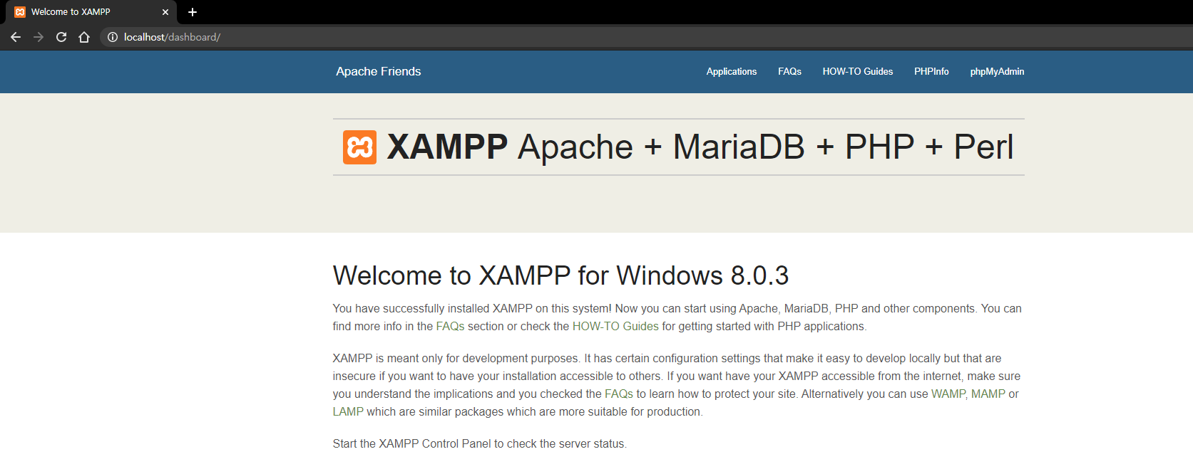 XAMPP는 소규모 웹에서 자주 쓰이는 Apache 웹서버, MySql 데이터베이스(홈페이지는 MariaDB로 소개), PHP를 포함하고 있다. Perl도 포함하고 있지만 이 글에서는 다루지 않는다.