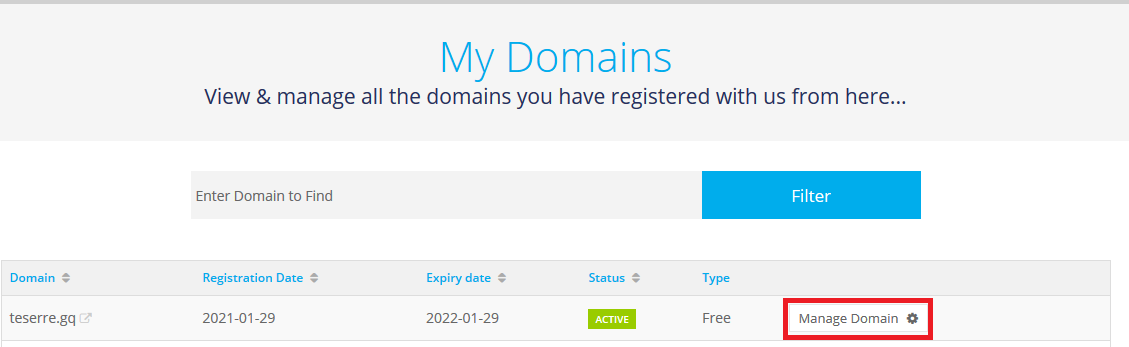 Manage Domain을 눌러 도메인 설정을 변경한다.