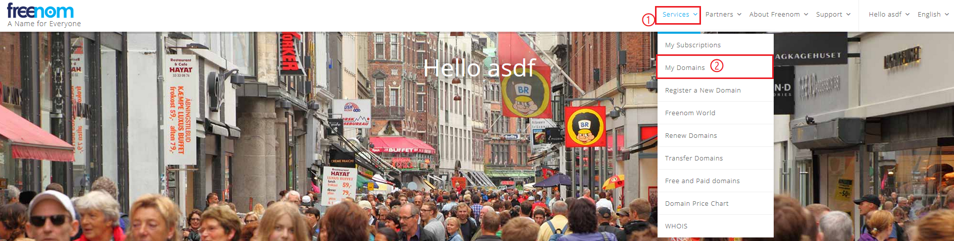 아무런 문제 없이 등록이 되었다면 서버ip와 도메인을 연결 시켜야 한다. Services -> My Domains에서 설정을 할 수 있다.