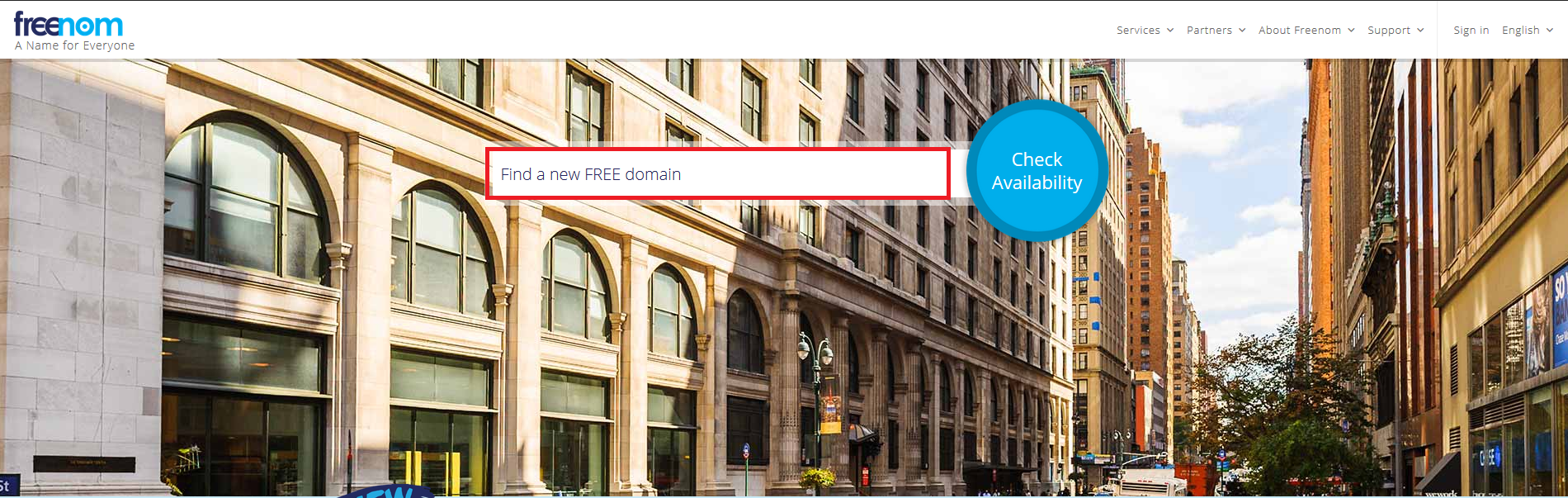 freenom 사이트에 접속하면 현재 사용할 수 있는 도메인 검색창이 나온다. 자신이 사용하고 싶은 도메인(naver.com이면 naver만 입력)하고 Check Availability를 눌러 검색한다.