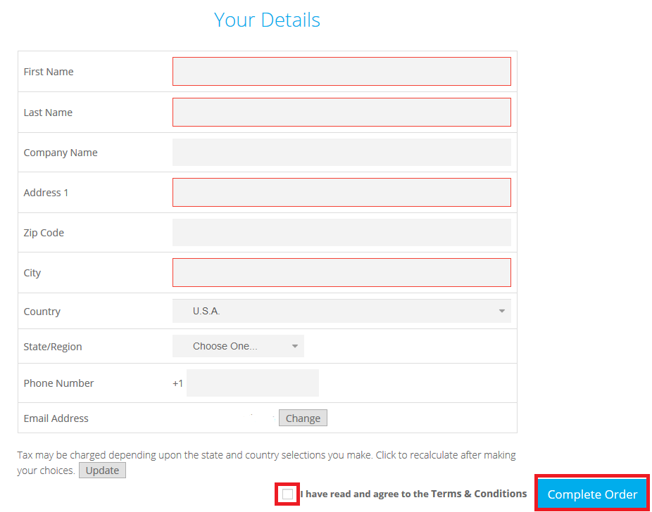 입력을 하고 약관에 동의를 한 후에 Complete Order를 눌러 주문을 완료하면 된다.