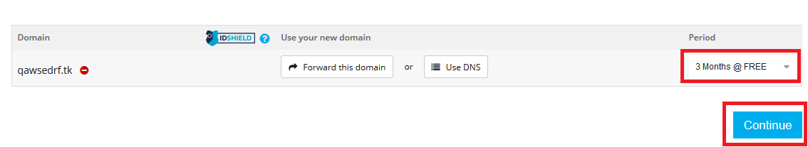 Period에서 해당 도메인을 사용할 기간을 정하는데 1~12Months 까지 월 기준으로는 무료지만 년단위로 넘어가면 사용료를 지불해야 한다. 이후에 원하면 다시 갱신을 하면 되므로 우선 기본 설정인 3달로 설정하고 다음으로 넘어갔다.