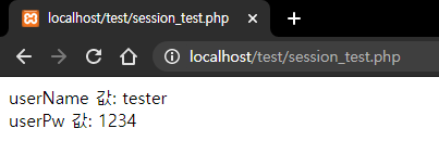 세션을 사용하여 변수를 등록하려면 $_SESSION['변수명'] = Data 형태로 사용하면 된다. 위 코드처럼 $_SESSION['userName'] = 'tester'; 라고 하면 userName이라는 세션 변수에 tester라는 값을 저장한다는 의미다.